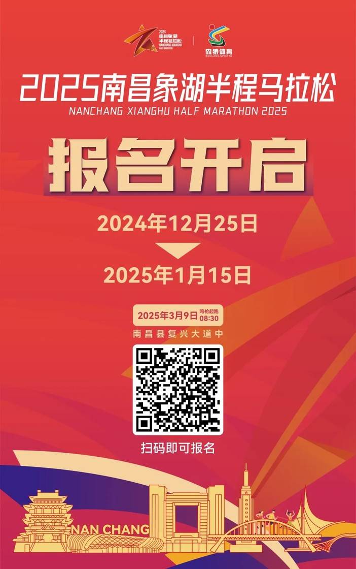 即日起至2025年1月15日24:00,报名人数超过限定名额后,将以抽签方式确定参赛资格。选手可登录官方微信公众号“南昌象湖半程马拉松”和“森狼体育”,按照提示流程报名并缴费。