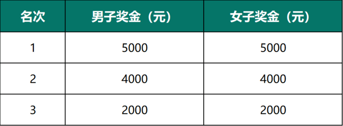 本次赛事在半程马拉松组别男女选手中各录取前3名运动员(以枪声成绩为准),分别获得奖金(见下表),男、女前三名选手将各颁发赛事奖杯一座。